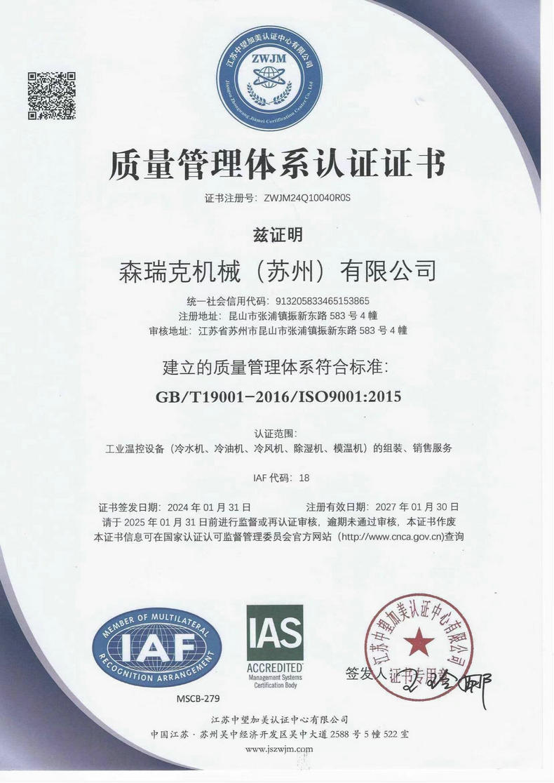 森瑞克機(jī)械(蘇州)有限公司(簡稱:SENRICK)是一家中外合作性企業(yè),引進(jìn)技術(shù),專注于工業(yè)制冷設(shè)備,工業(yè)溫控設(shè)備,非標(biāo)制冷設(shè)備,集激光,化工,真空設(shè)備輔機(jī)等集研發(fā)、生產(chǎn)、銷售、服務(wù)于一體的的現(xiàn)代化科技企業(yè)。公司擁有完善的制造設(shè)備,先進(jìn)的檢測系統(tǒng),獨立的加工、生產(chǎn)工藝,一支開拓創(chuàng)新專業(yè)有素的技術(shù)人才團(tuán)隊,以及全面的質(zhì)量控制體系,為產(chǎn)品質(zhì)量的不斷優(yōu)化提供了強(qiáng)大的保障,以確保滿足不同市場的各種需求。經(jīng)過多年的努力企業(yè)相繼研發(fā)生產(chǎn)出了工業(yè)冷水機(jī),工業(yè)冷風(fēng)機(jī),工業(yè)冷油機(jī),工業(yè)機(jī),低溫冷水機(jī),低溫冷風(fēng)機(jī),低溫冷油機(jī),螺桿式冷水機(jī)...